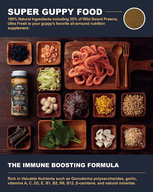 Ultra Fresh Royal Guppy Pellet Fish Food 4.6oz High Protein Color Formula