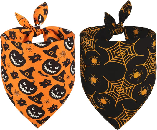 Halloween & Christmas Dog Bandanas 2-Pack – Reversible Holiday Themed Scarf XL