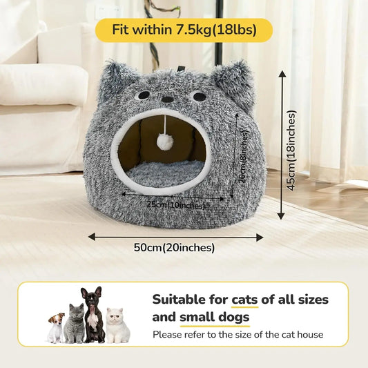Indoor Cat & Small Dog House, Washable Cozy Cave Bed with Removable Pillow