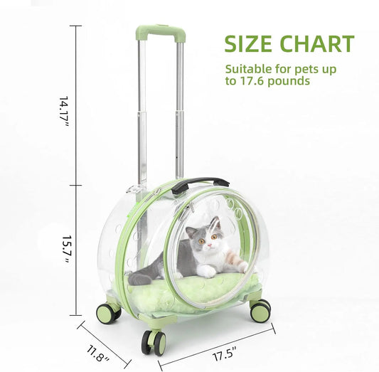 Transparent Rolling Cat & Dog Carrier – Breathable Hard Shell with Wheels & Strap