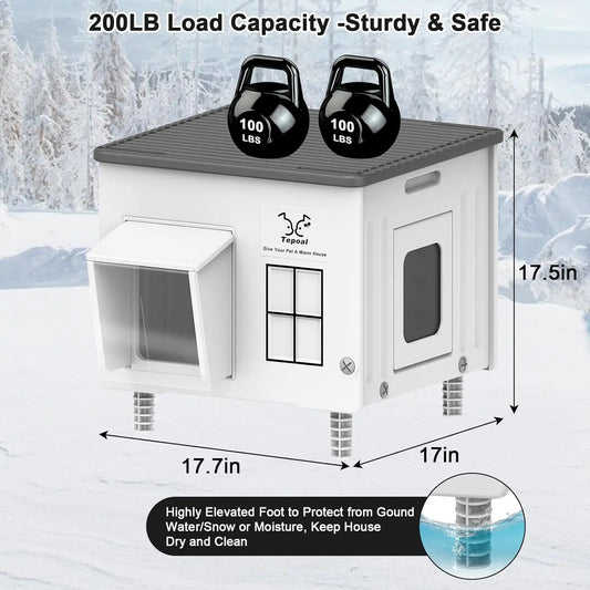 Heated Outdoor Cat House with Escape Door, Insulated Weatherproof Shelter